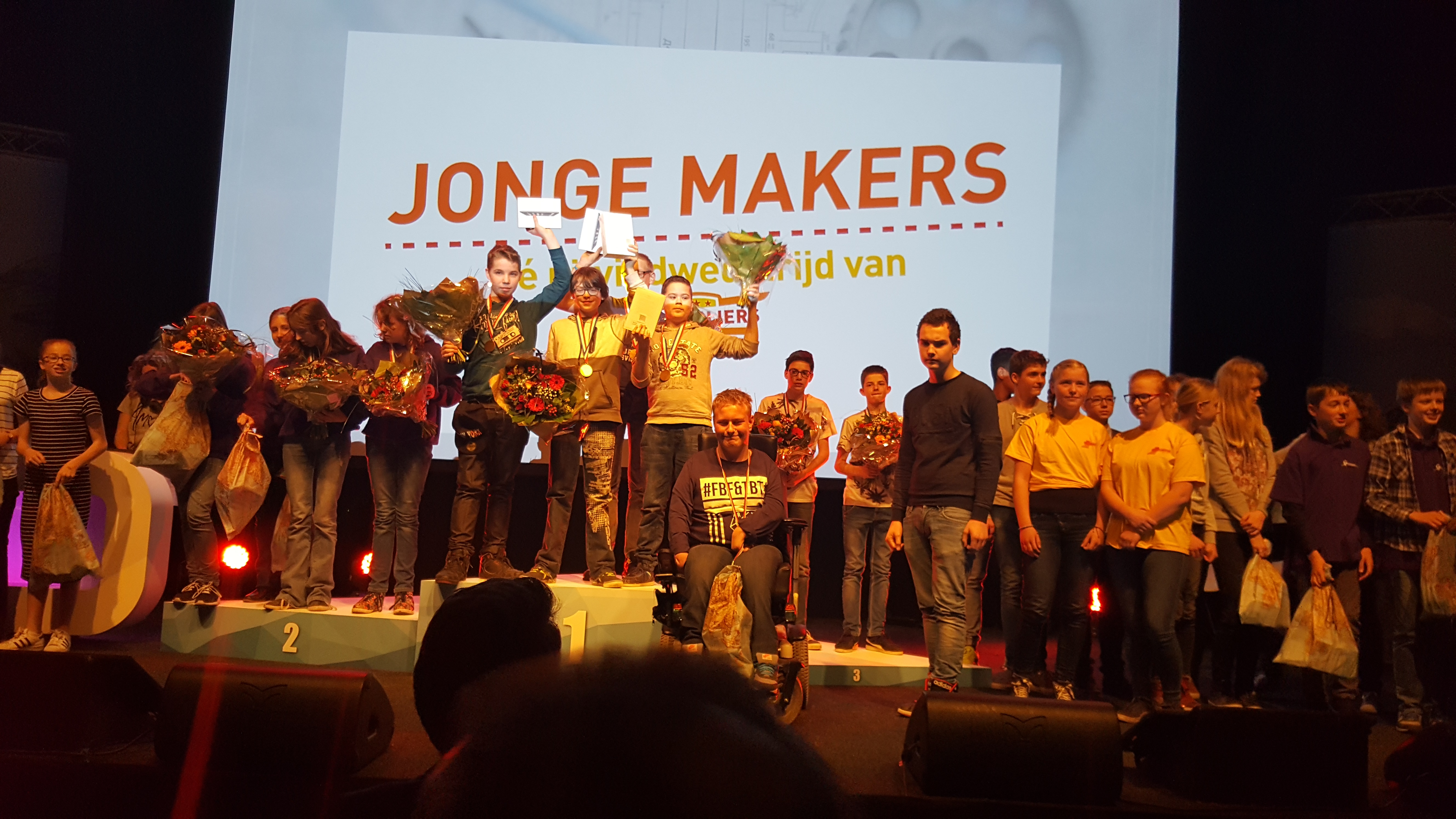 Afgelopen donderdag was de finale van de Jonge Makers. Twee leerlingen van onze school stonden in de finale met hun