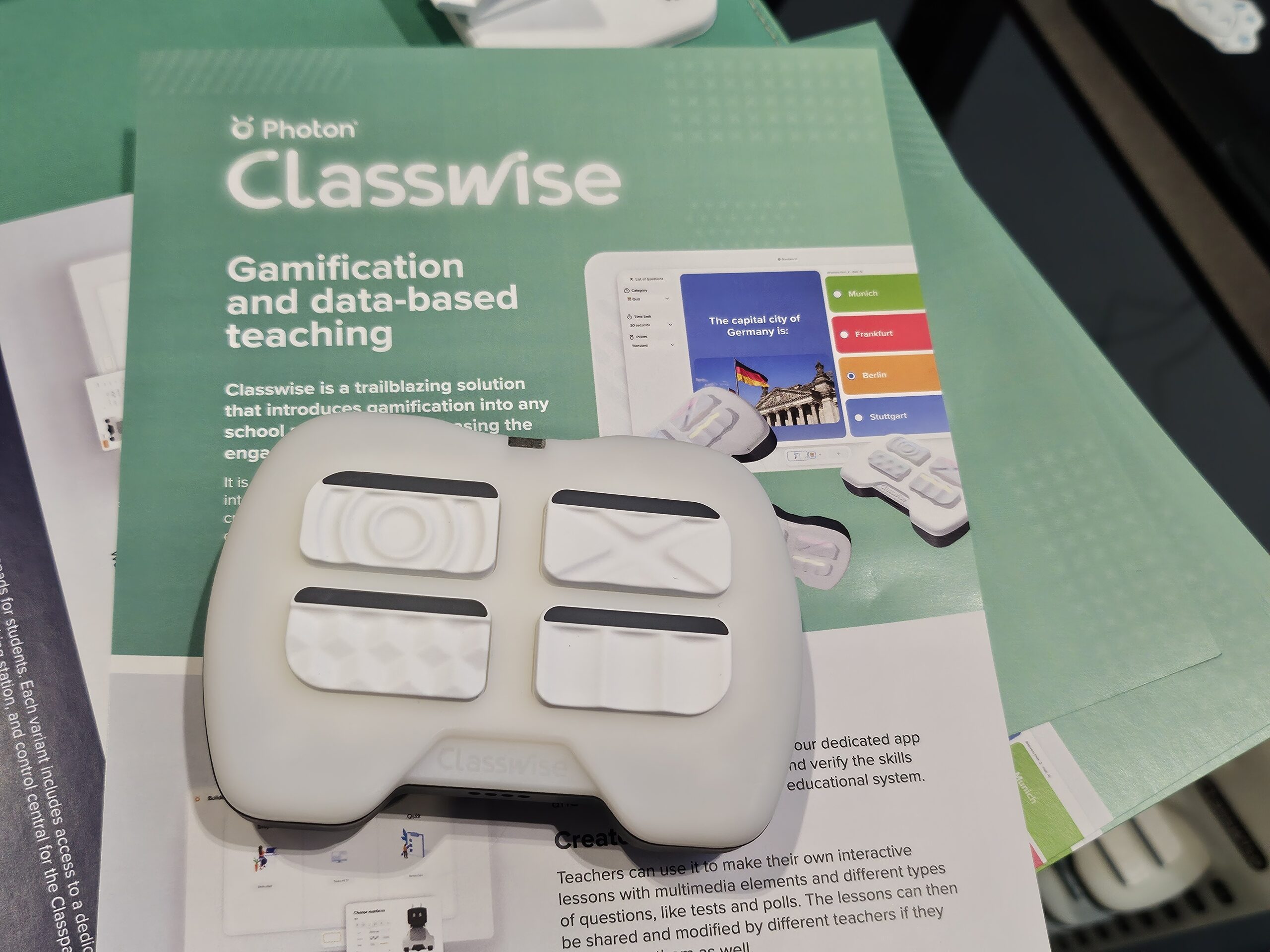 | 7. Photon Classpads: Met deze draadloze kleine kastjes kunnen leerlingen een quiz spelen via het digibord. Met deze kastjes (met 4 voelbare knoppen) kunnen ze stemmen en als ze hebben gestemd trilt het kastje. Ook als er een nieuwe vraag komt geeft heen kastje weer een trilsignaal. Je moet wel zelf een quiz maken (het werkt niet in Kahoot!) maar het ziet er ongeveer zo uit. Ze spelen zo in op minder telefoons in de klas. De kastjes komen in sets van 10 stuks. | ![]() |