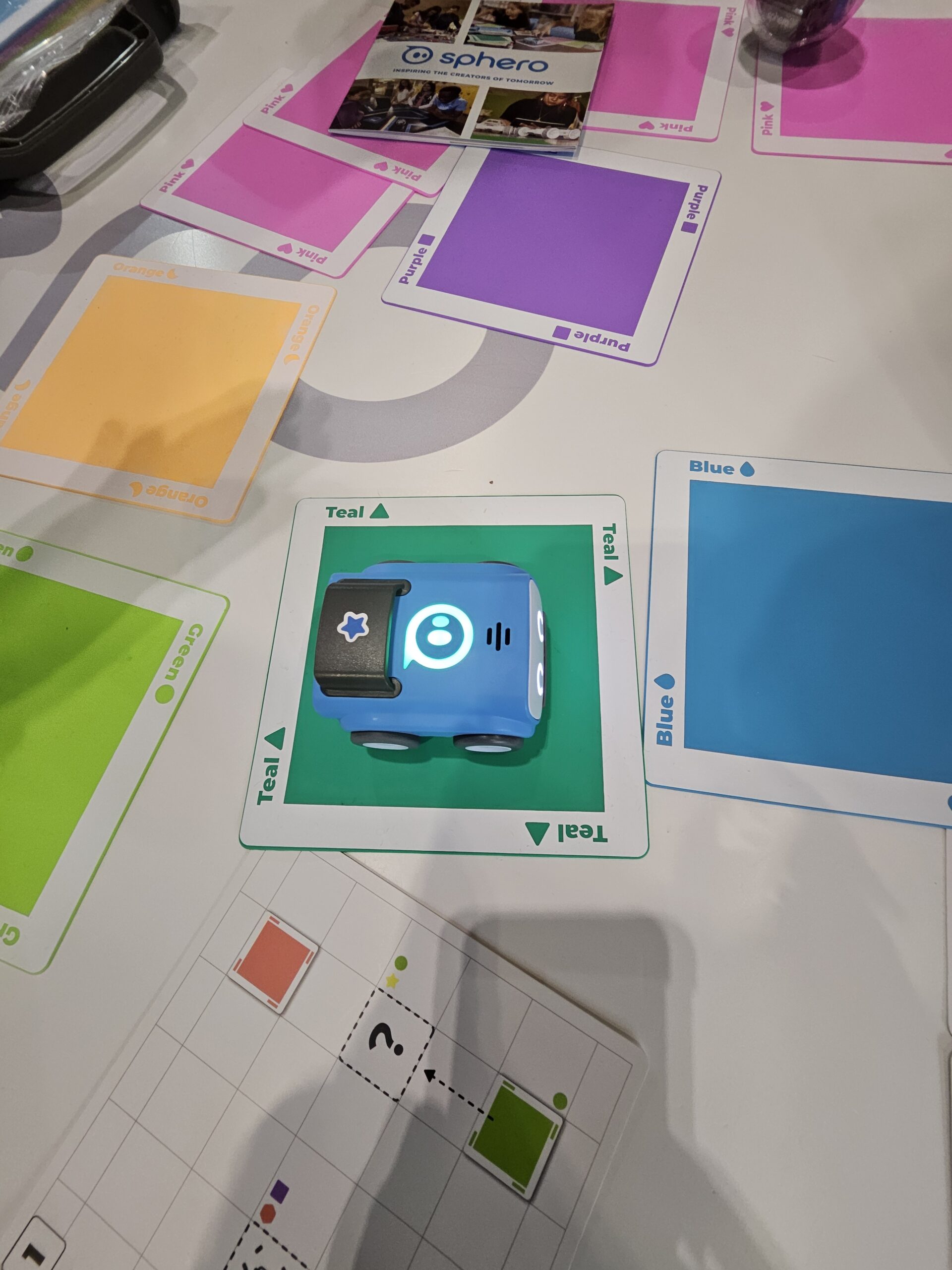| 2. Sphero Indi: De Sphero is van de fabrikant ozobot en Sphero ball. Deze robot kun je aansturen door gekleurde vierkanten tegels op de grond te leggen, afhankelijk van de kleur gaat hij rechtdoor, rechts, sneller etc. Deze tegels kunnen we ook op gekleurd papier printen en braille toevoegen. Hij is leuk om te gebruiken in de programmeer lessen, maar ook om leerlingen logisch te laten nadenken, links, rechts begrippen te laten oefenen. | ![]() |