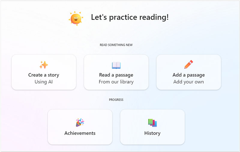 | 8. Reading Coach: helpt je leerlingen met lezen. Ze kunnen een eigen verhaaltje met AI laten maken en dit steeds moeilijker en uitbreiden. Je kunt de windows app downloaden of online spelen. | ![]() |