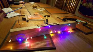- Verbind in één keer je electriciteits draad, één kant van de buzzer en één kant van de kerstlampjes