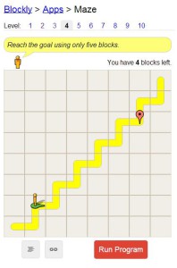 Ik kwam vandaag op deze website hoe je kunt leren programmeren. Hij heet Blockly en je moet een poppetje laten lopen. Het werkt met kleine scratch icoontjes. Het is in het engels, maar ik denk voor bovenbouw po en onderbouw vo is het zeer geschikt.