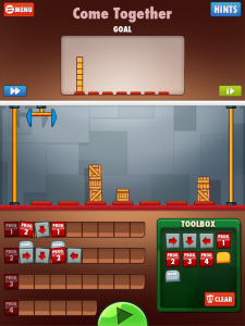 Ik heb vorige week de App Cargo-bot .gedownload en getest. Deze is een stuk moeilijker en veel uitdagender dan de Kodable. Je moet met een kraan gekleurde blokken verplaatsen volgens een vast patroon. Ze geven steeds aan in hoeveel stappen je de oplossing kan geven. Je leert heel compact denken. Een probleem in hapklare oplossing omzetten. De basis levels zijn leuk voor groep 7/8 maar daarna wordt het een stuk moeilijker en zullen heel wat middelbare scholieren het niet kunnen oplossen. Het leuke aan deze app is dat alle oplossingen op youtube staan. Als je met een oplossing komt die nog niemand heeft gemaakt, vragen ze je om het filmpje (je kunt automatisch opnemen wat je hebt geprogrammeerd) op youtube te zetten. Ik heb alle oplossingen ook in dit document gezet. Ik had er nog een hele kluif aan om tot alle 3 sterren oplossingen te komen. Gelukkig kon ik ook gebruik maken van de youtube oplossingen.