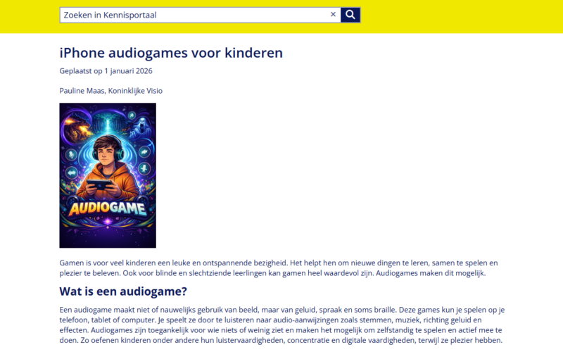 Ik heb voor mijn school Koninklijke Visio een artikel geschreven op hun kennisportaal website over audio games. Je kunt het