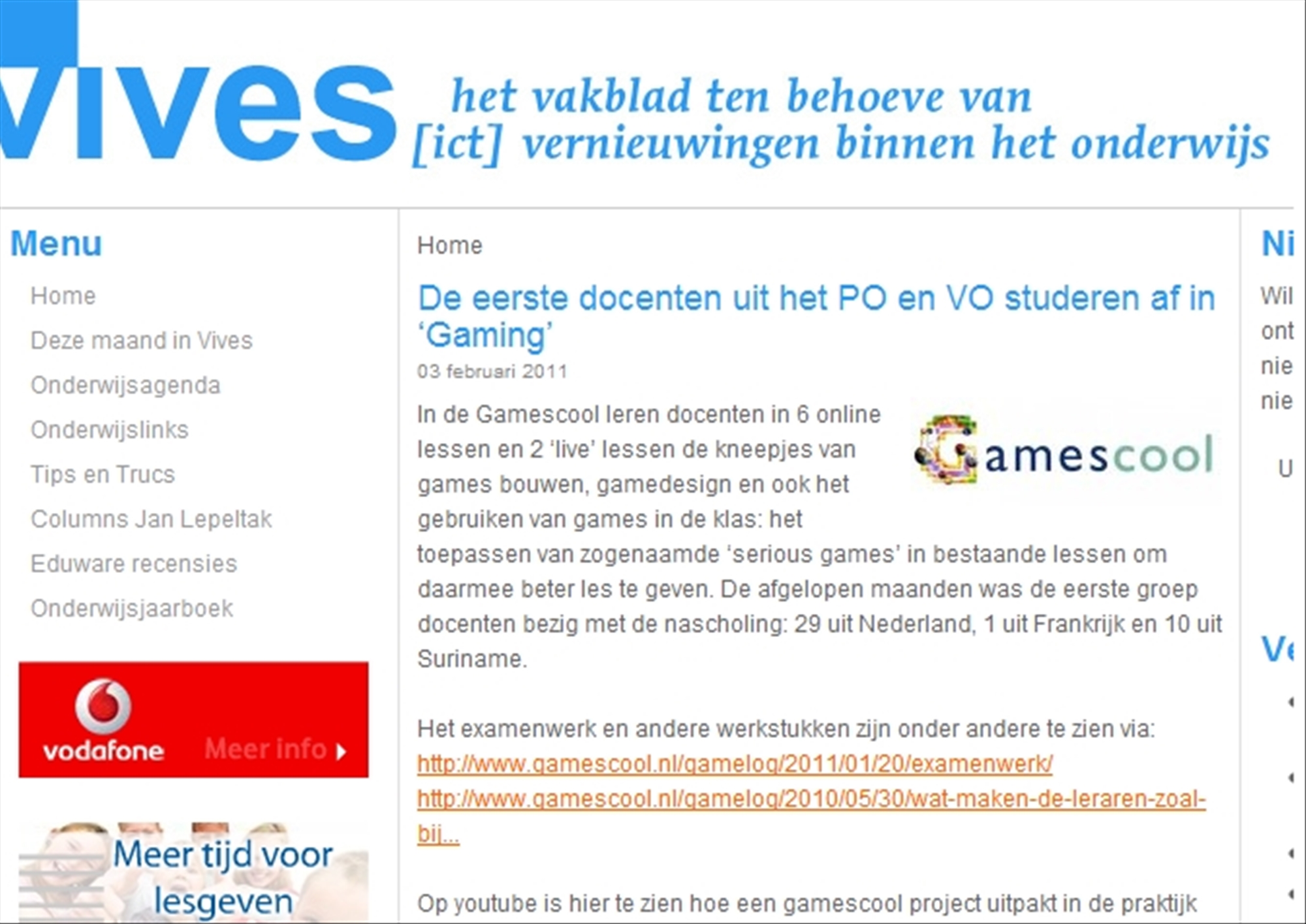 Via via kwam ik er achter dat er een stukje op de Vives site staat over de GameScool. Dat is