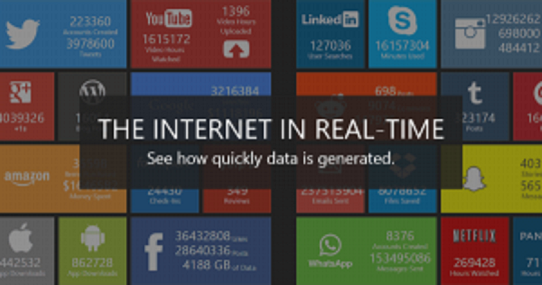Via twitter kwam ik op deze bijzondere link. Het internet in REAL time. Click image to open interactive version (via