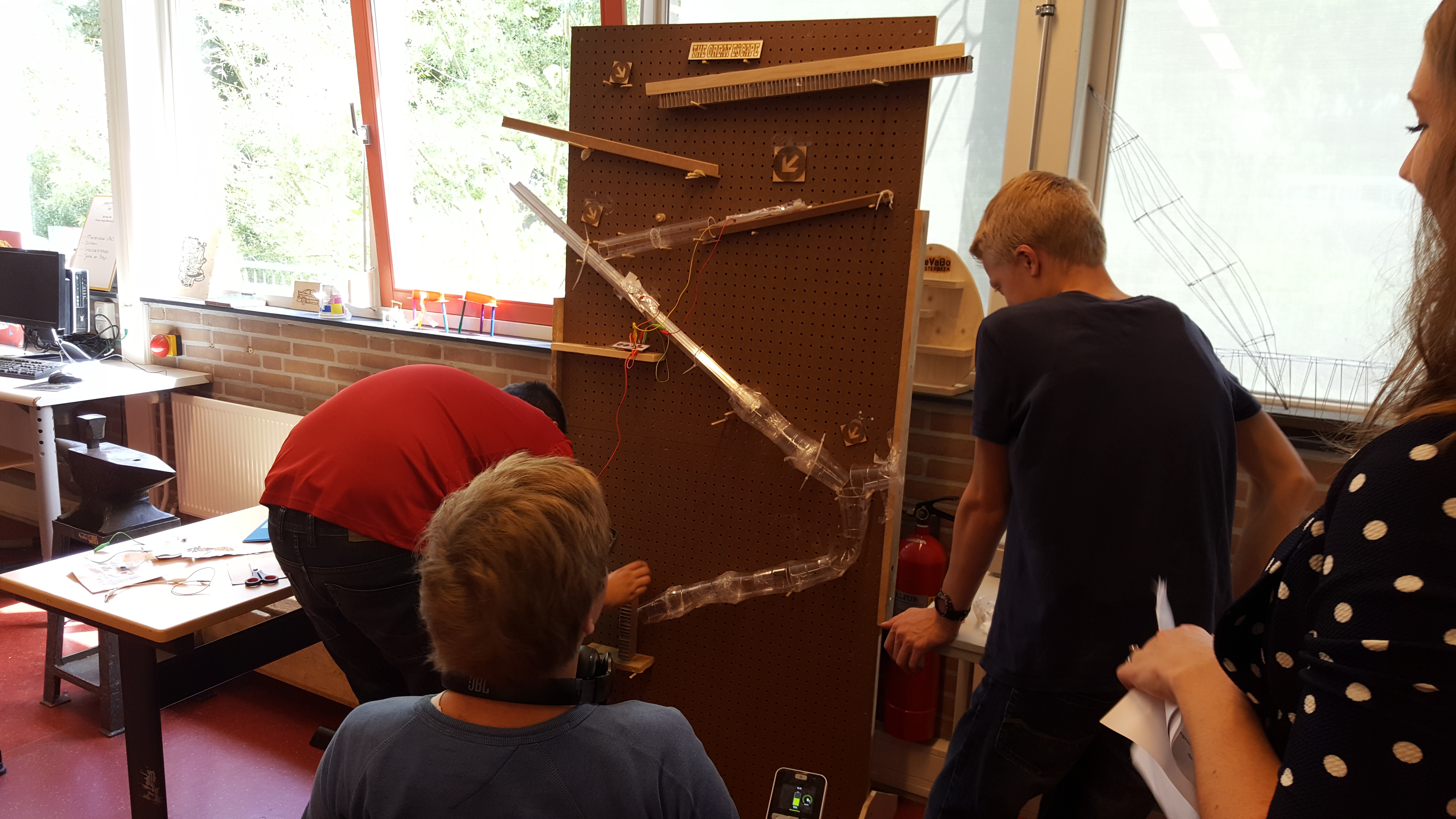 De afgelopen vier weken heb ik met een aantal jongens van de bovenbouw van het VSO Mariendael een knikkerbaan gemaakt.