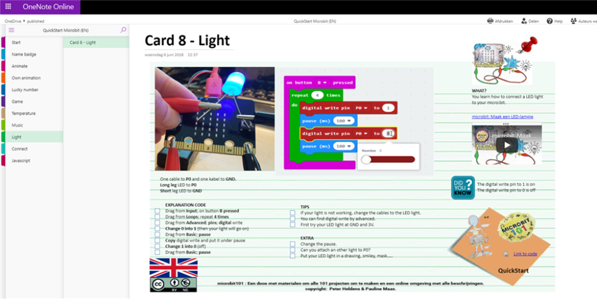 We zijn er bijna met alle projecten voor de OneNote microbit101. Om de expert projecten te kunnen vullen moest ik