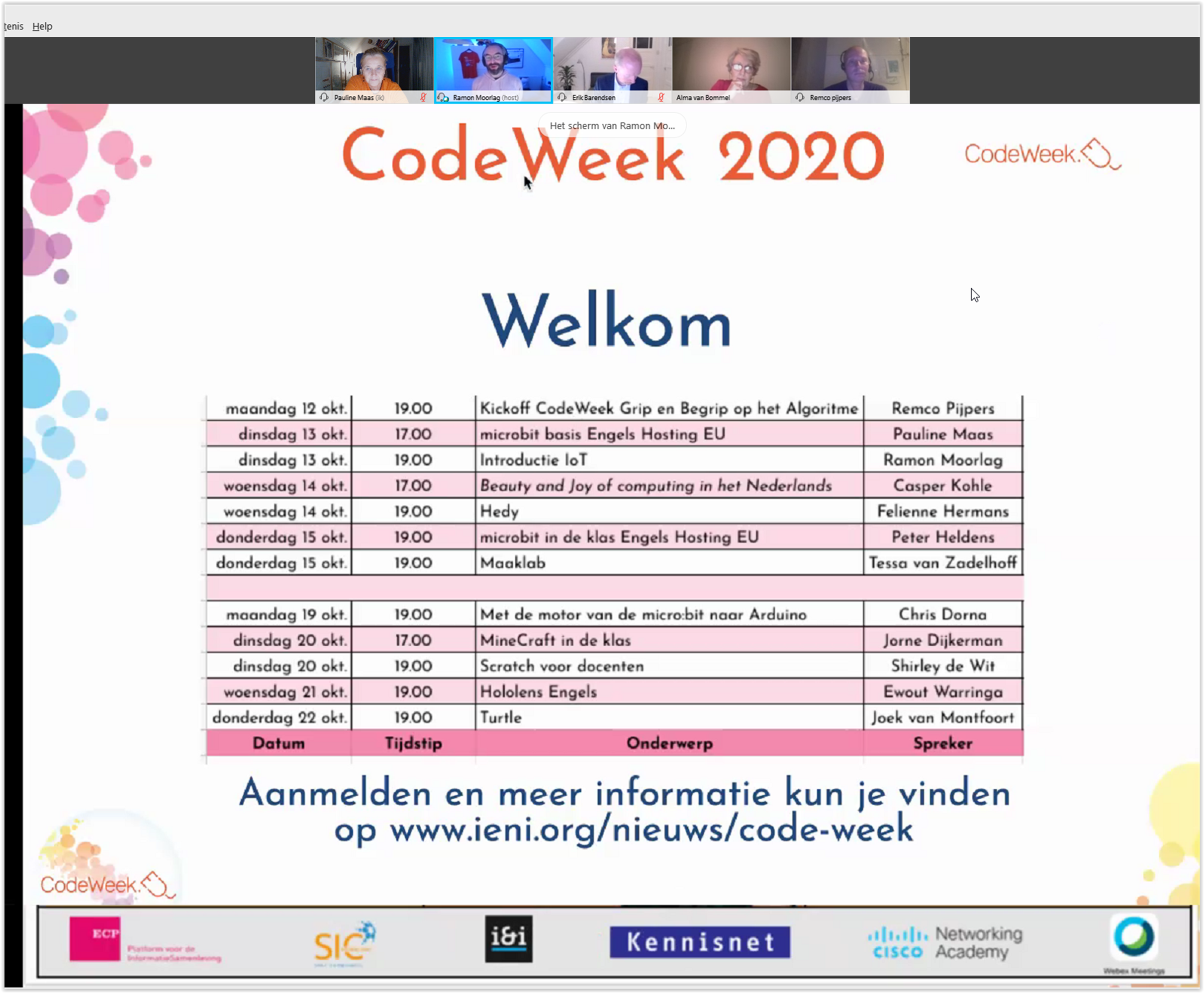 Afgelopen maandag hadden we uitleg van Webex ivm de 12 webinars van CodeWeek die we vanaf volgende week gaan geven.