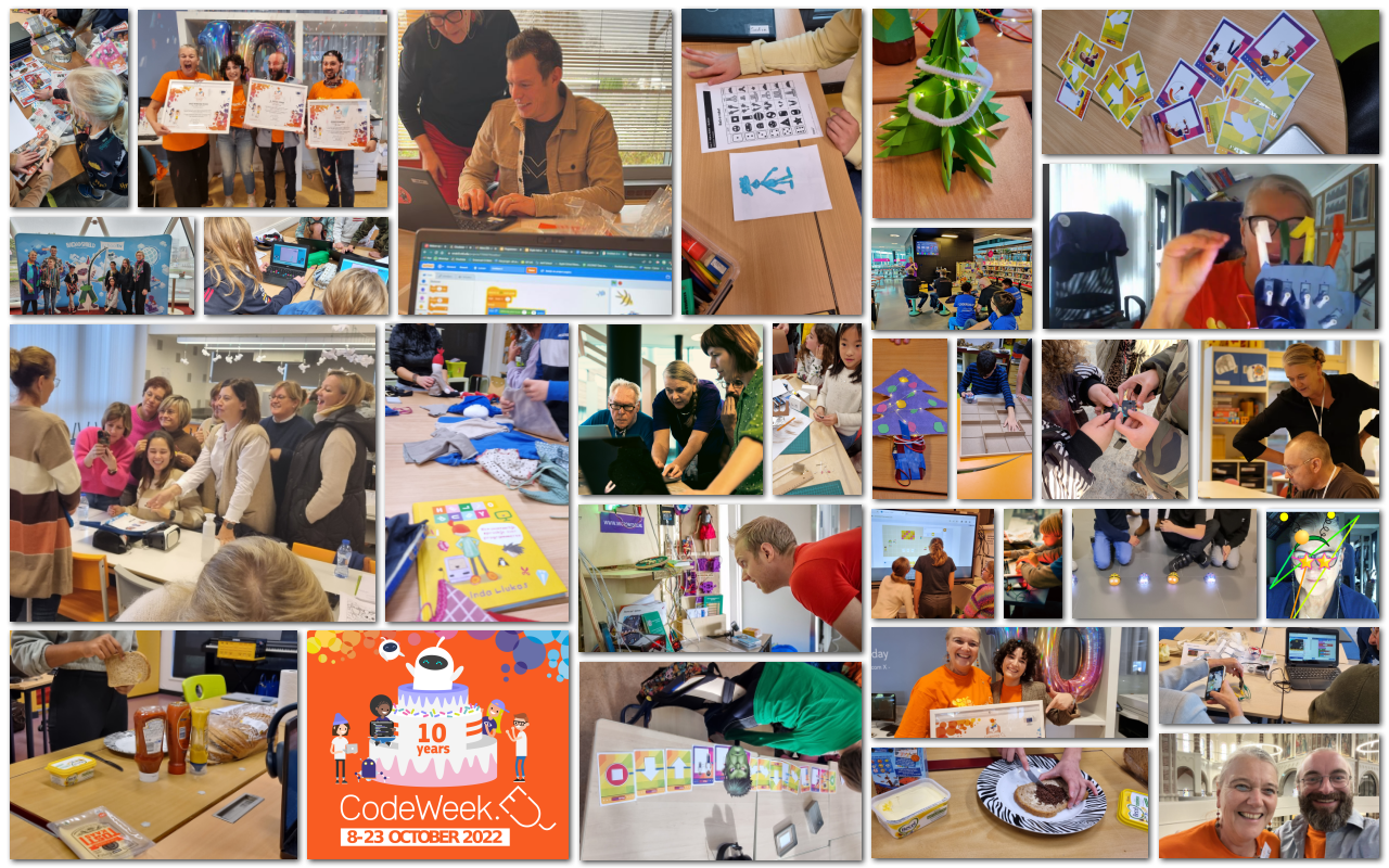 In het jubileum jaar van de CodeWeek 10 jaar heb ik eens een overzicht gemaakt van de activiteiten die ik dit jaar allemaal heb gedaan. Het is een combinatie van workshops voor leerlingen, docenten en online lezingen. Als je het zo bij elkaar ziet dan is het heel wat.