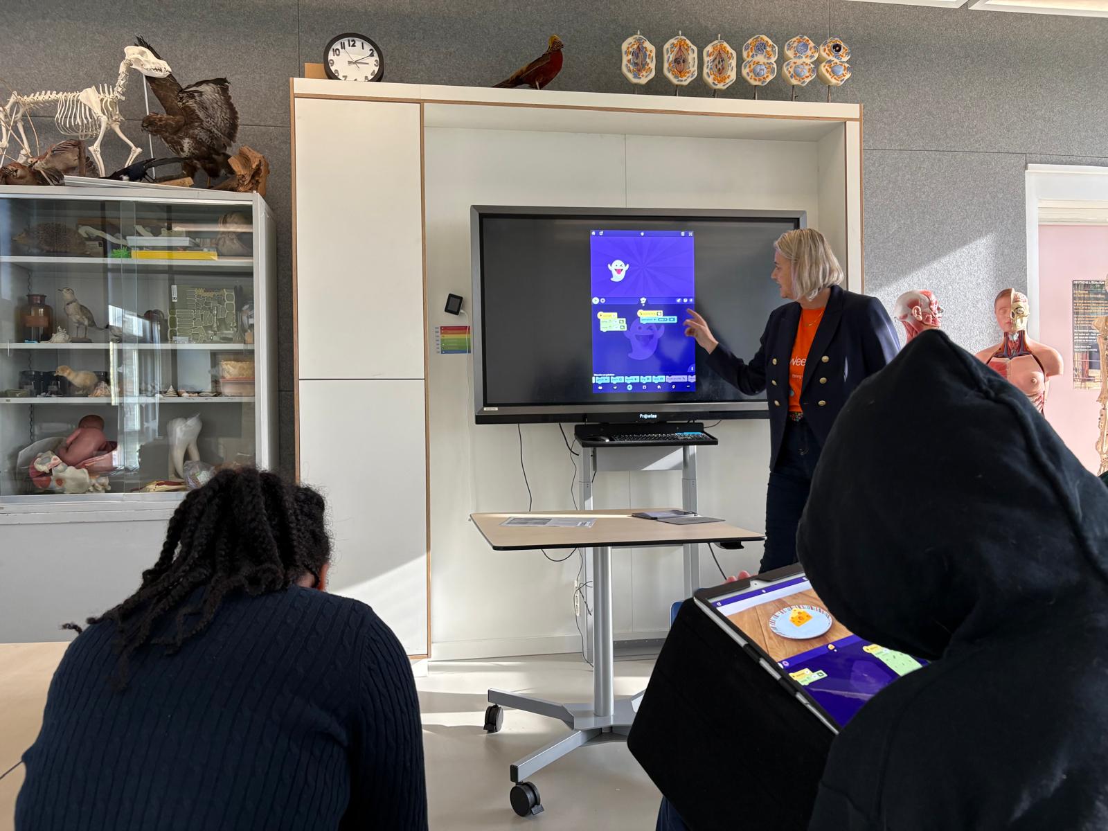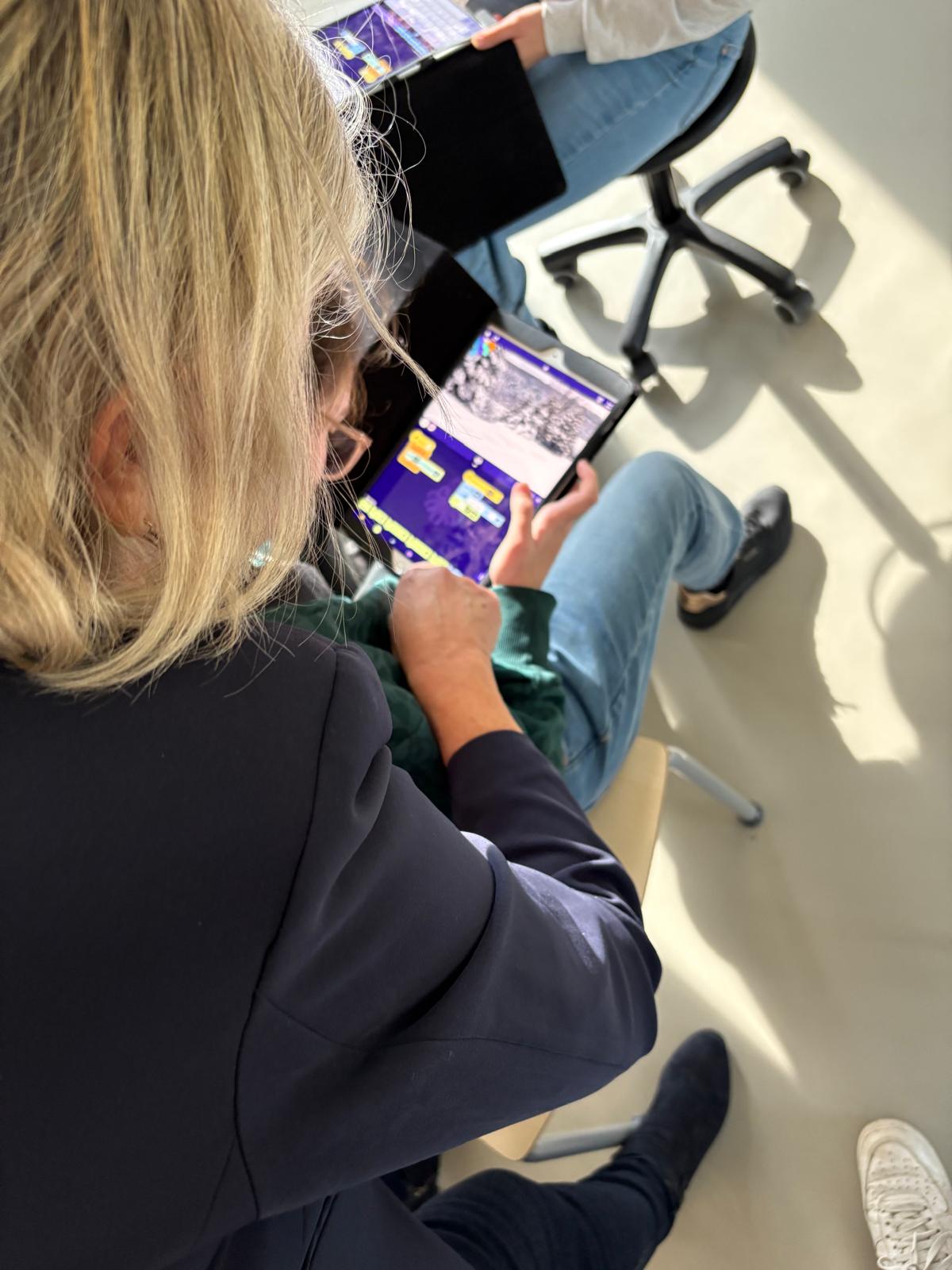 We hebben in oktober 2024 tijdens een Meet and Code event op de Speciaal Onderwijs School Koninklijke Visio in Amsterdam een aantal programmeer lessen gegeven met de app OctoStudio. Na een korte verkenning gingen de leerlingen aan de slag om zelf een game te maken.