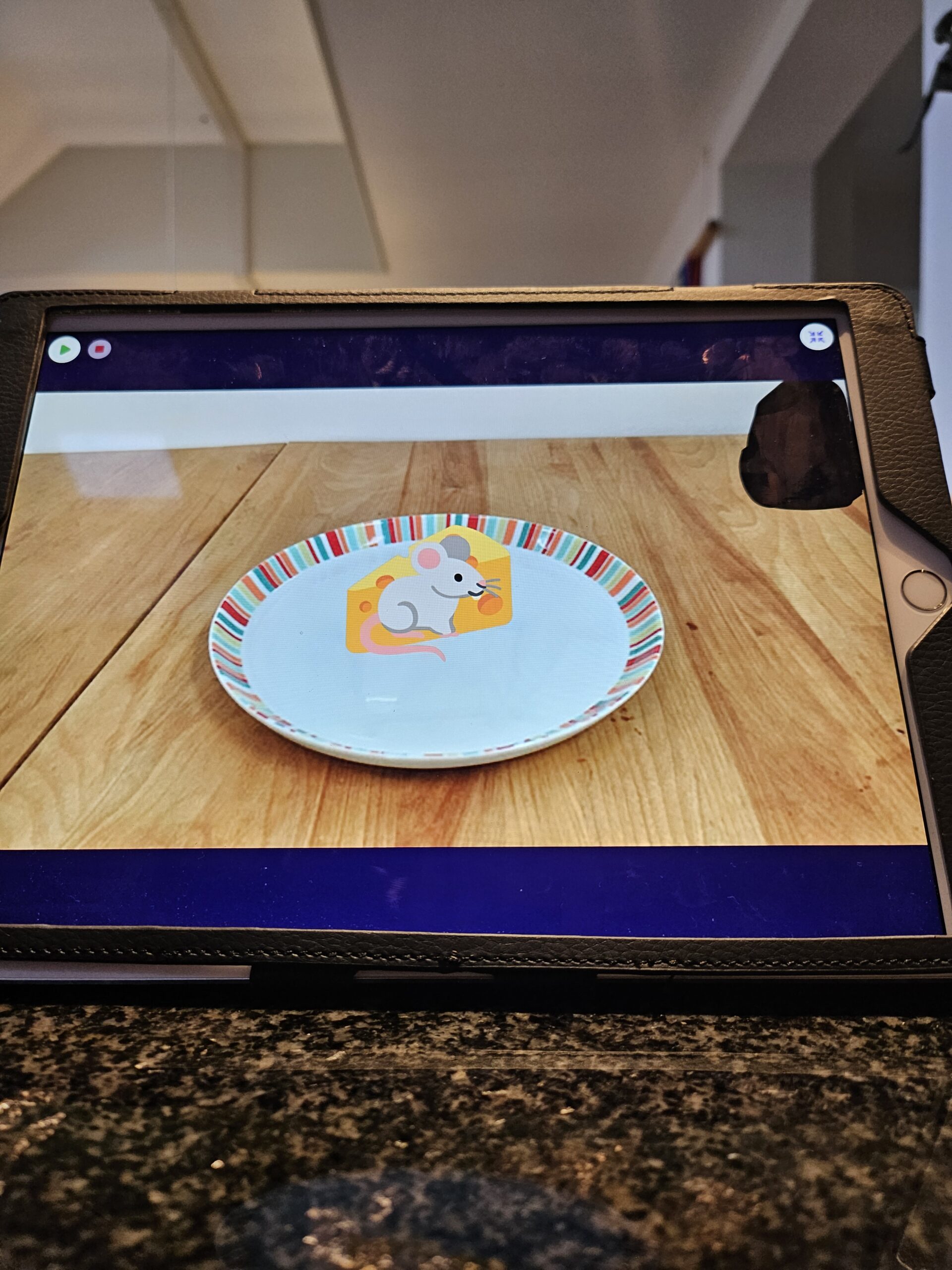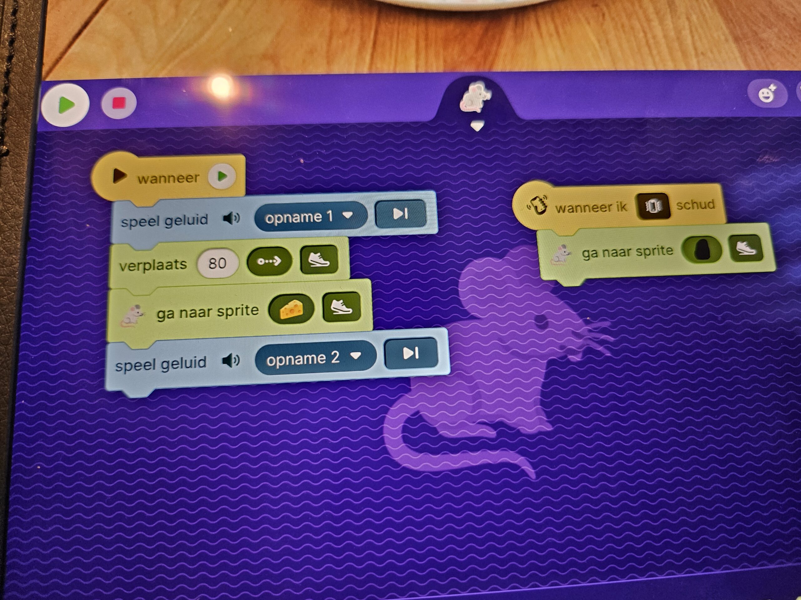 De leerlingen hebben een bijvoorbeeld en game gemaakt dat een muis er met de kaas van door gaat.