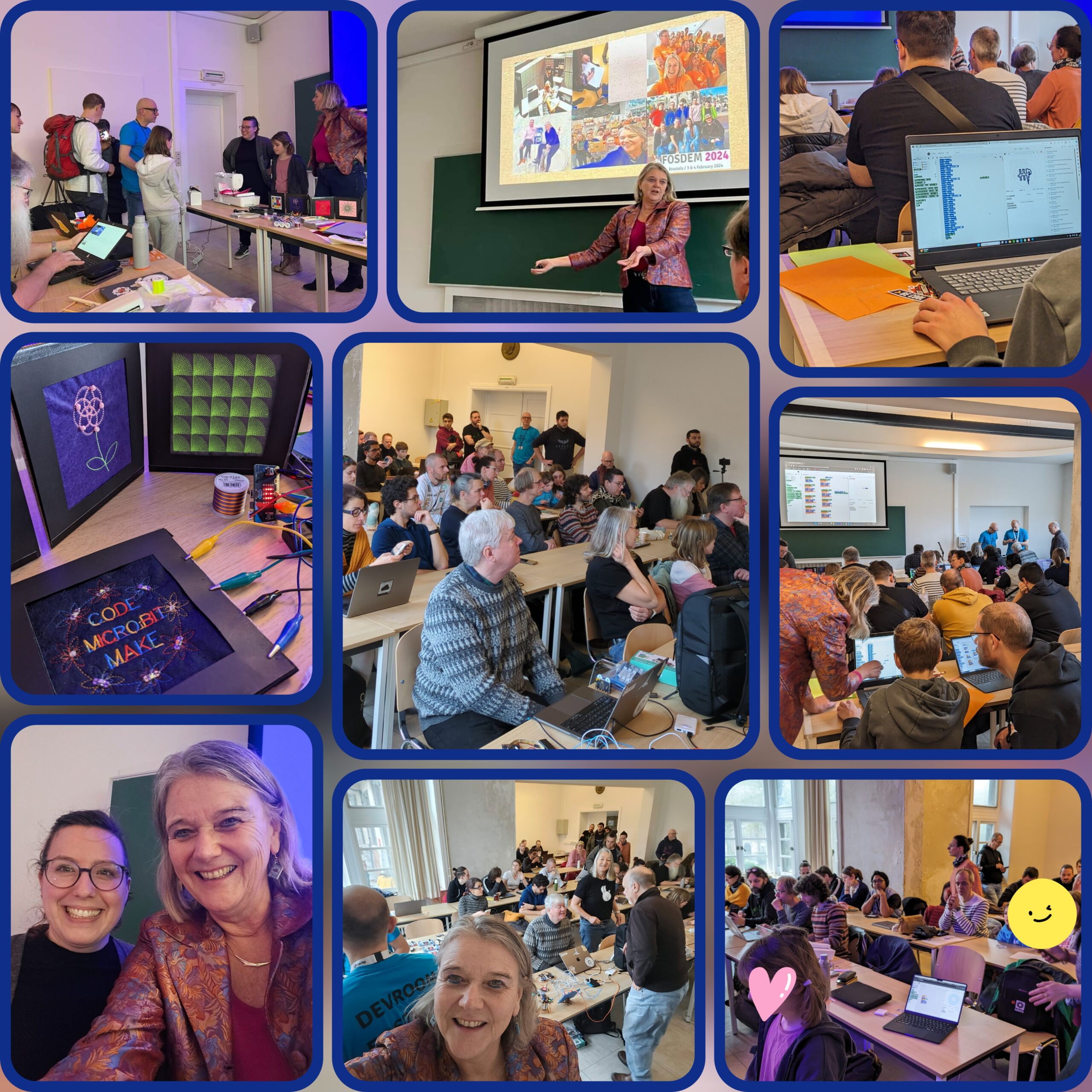 In february I was in Brussels to give a TurtleStich workshop on the Fosdem Conference. I gave a small presentation and then the persons in the workshop could try out the website and put their patern on a USB stick, so i could print it on my embroydery machine.