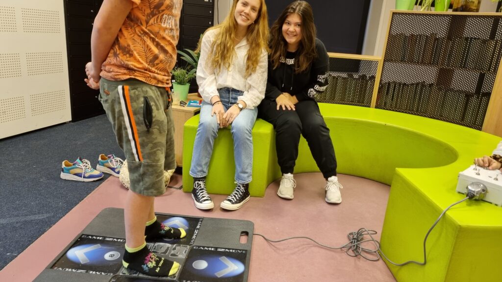 In december waren Inge en Inez weer bij ons op school van het LingerCollege. Zij zijn bezig om een dansmat voor onze leerlingen te maken en te ontwerpen als hun meesterproef bij het vak O&O. Ze zijn erg enthousiast en nadat ze in het voorjaar al waren geweest om te kijken wat ze zouden kunnen maken, waren ze dus in december terug om hun eerste prototype te laten zien. Onze leerlingen hebben veel plezier gehad om de mat te testen. Met de resultaten gaan ze nu weer door en moeten ze hun profiel werkstuk en meesterproef verder afmaken. We zien vast in het voorjaar weer terug met hun prototype 2.