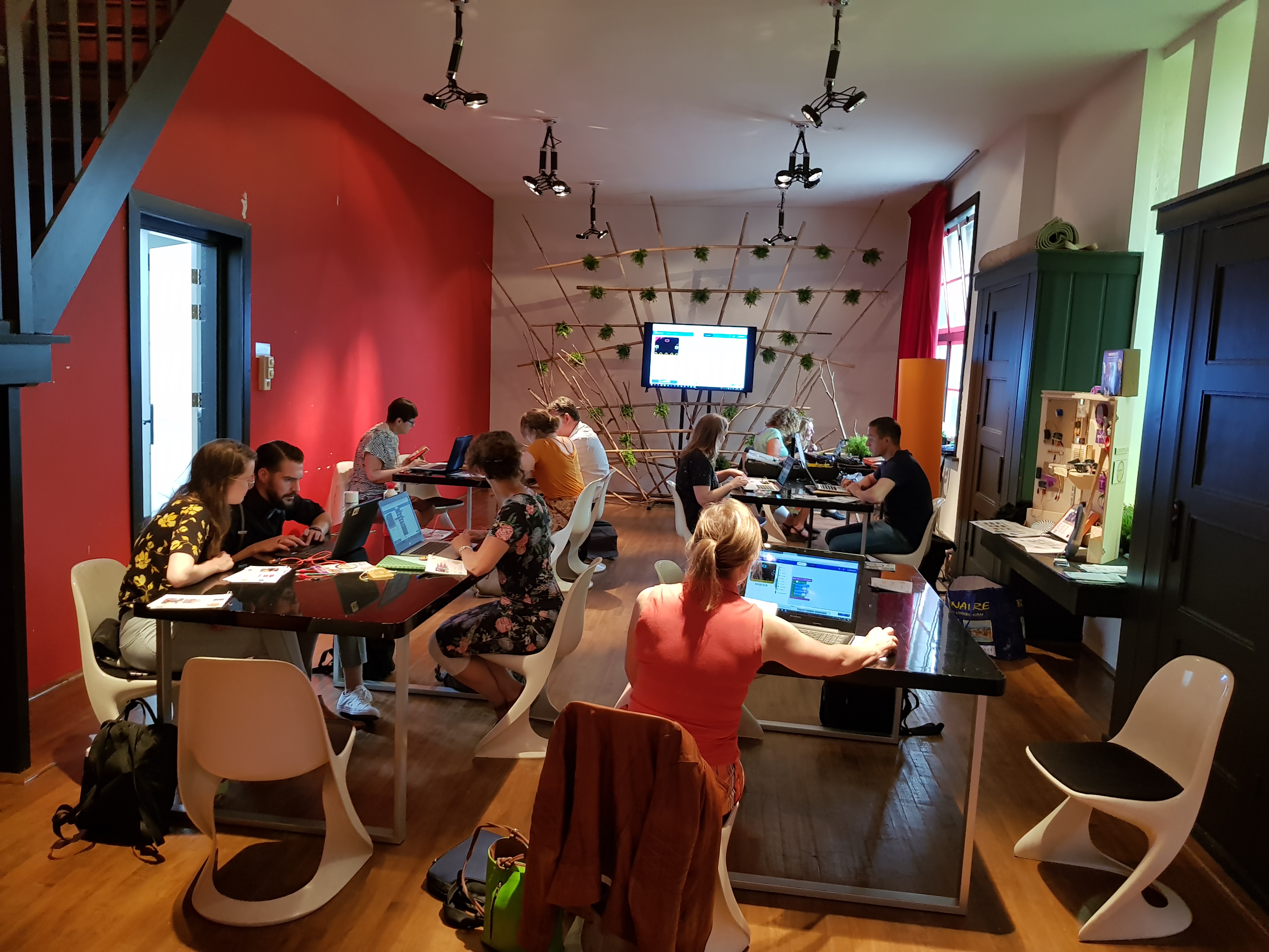 Ik was al vroeg opgestaan om op tijd in Delft te zijn en ik heb altijd nogal wat spullen bij me. Toen ik alles goed en wel had opgesteld en alles werkte had ik net nog tijd op koffie te drinken. De eerste mensen kwamen binnen voor mijn workshop. Een leuke groep waarvan de helft al eens wat met de micro:bit had gedaan. De andere helft wist niet wat het was. Gelukkig kan dat altijd, na afloop van de workshop hebben we al mijn projectjes in mijn “tempeltje” bekeken en toen was het tijd voor pauze.