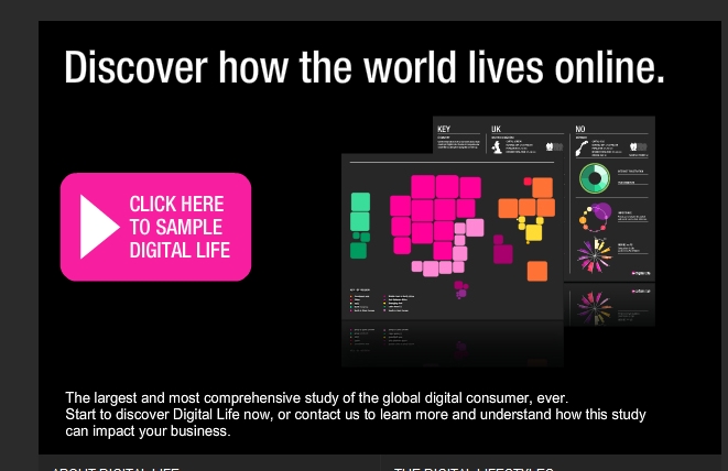 Het wereldwijde onderzoeksbureau TNS publiceerde gisteren de resultaten van Digital Life, de omvangrijkste studie naar online gedrag die ooit werd uitgevoerd. Digital Life ontsluit informatie over 88 procent van de online wereldbevolking. TNS ondervroeg bijna 50.000 respondenten in 46 landen. Digital Life laat zien hoe mensen in al die landen internet gebruiken, welke ontwikkelingen we nu zien en nog kunnen verwachten. De resultaten van dit onderzoek zijn te vinden op http://discoverdigitallife.com/. Social media in opkomende markten veel dominanter dan in gevestigde markten.