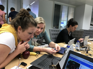 Half oktober was ik met een groep van 4 nederlandse docenten in Brussel. We moesten in het EBC gebouw van microsoft Brussel een tweedaagse training verzorgen voor een aantal docenten uit Nederland. Ik ging de avond van te voren al naar brussel en daar konden we nog even goed overleggen. De eerste dag was vooral gericht op teamsites, one note en minecraft. Wij mochten een aantal micro:bit spelden prikken geven en de tweede dag was vooral voor ons. Ik begon die ochtend met een lezing over computational thinking en hierna was het lekker praktisch met de micro:bit aan de slag. Ik had een hele doos meegenomen met elektronisch knutsel materiaal. De docenten gingen na ons verhaal direct aan de slag. En ze waren te druk om te gaan koffie drinken en te lunchen. Dus kregen ze meer tijd om dingen te maken. Gelukkig mochten ze al hun gefröbbelde dingen meenemen. Hierna moesten ze wat ze hadden geleerd in een sway zetten. De een was heel erg bijzonder, of mooier en hilarischer. (een groepje had zelfs een toneelstukje gemaakt van hun gemaakte micro:bit projectje) Je kon zien dat ze veel hadden geleerd en meegekregen van deze dag. Omdat ze ook twee dagen helemaal uit hun “normale” omgeving waren zag je dat ze veel dingen met elkaar aan het overleggen waren hoe ze dit op hun eigen school zouden gaan doen.