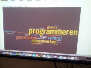 Ik was vorige week op de Leonardo school in Westervoort. Dit was de laatste keer van het project GameMaken met GameMaker4School. De leerlingen hebben een aantal lessen van mij gehad. Maar hierna moesten ze het toch echt alleen doen. Ik mocht nu kijken naar de resultaten. Sommige waren prachtige, andere moesten toch nog hier en daar een beetje bijgewerkt worden. Maar dat geeft niks. We hadden die ochtend pret om alle games te testen. Toen ik als laatste een Wordle maakt met wat heb je geleerd kwamen er wel hele leuke dingen uit. Naast hele concrete dingen als games maken. Vertelde één meisje dat je toch zo nu en dan moet opletten wat de juf verteld. Anders mis je een stuk en kun je niet verder.