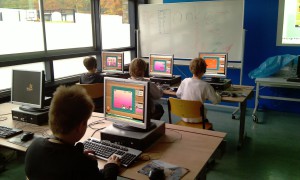 Afgelopen dinsdag was ik op een school voor Speciaal Onderwijs. Ik mocht daar met een groep van 10 leerlingen (allemaal jongens) games maken. Na overleg met de school hadden we besloten dit met de GameStudio te gaan doen. Dat is eenvoudig te realiseren en je hebt snel resultaat. De leerlingen inderdaad erg enthousiast. Ze wilden wel heel veel meer. Maar ze mochten deze week van mij maar één level maken. Er komen nog twee lessen. Aan het eind van de les hebben ze elkaars game bekeken en gespeeld. En er was ook nog tijd voor een filmpje van het klokhuis over de geschiedenis van de games.