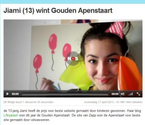 Vorige week was de uitreiking van de gouden apenstaart. Ik was lekker naar hilversum gegaan. Eerst kregen we een verhaal van een filmmaker van de kro. En die liet haarfijn het verschil zien tussen films in nederland en andere landen (een kind mag niet met een mes snijden, niet zomaar op straat spelen etc). Ook was er iemand van donald duck (45 donald duck caracters zijn aan het twitteren) en iemand van nijntje (less is more). Na de pauze was dan de uitreiking van de apenstaarten. Er was een categorie van website gemaakt door jongeren en gemaakt door volwassen. Maar ook was er een app gemaakt door jongeren en voor kinderen. De winnaar was een meisje die nog maar een jaar een weblog heeft over mode en kleding. Leuk dat zo’n meisje wint. Het item was ook nog in het jeugdjournaal.