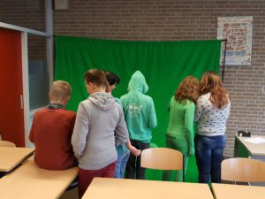 orig week had ik weer een brugklas. Ik had het greenscreen neergezet en de iPad’s opgehaald met de VeeScope app. “Juf, gaan we met de greenscreen iets maken?”Ik moest lachen, waarom denk je dat ik dat neer heb gezet. Ik liet ze het eerste half uur lekker een beetje klooien en de app onderzoeken en kijken wat mogelijk is. Er waren veel hilarische moment. Hierna moest iedereen weer gaan zitten en in kleine groepjes een plan maken, wat ga je dan maken? Dat is altijd moeilijk. Met wat tegenzin gingen ze met de opdracht aan de slag. Gelukkig hadden een aantal groepjes aan het eind van de les iets om te laten zien. Het filmpje hieronder is hier een voorbeeld van.