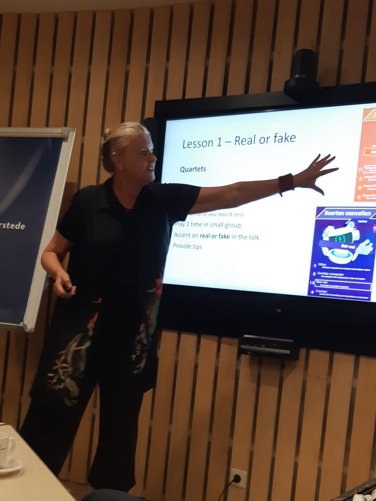 Later die week mocht ik deze presentatie nog eens kort overdoen bij een bijeenkomst van Taskforce Digitale Veiligheid in de regio Utrecht. Dit zijn burgemeesters en politie functionarissen. Dit team heeft ook aan de basis gestaan van dit project en een leuke opmerking was wel. Wat leuk dat er dit nu uit is gekomen. Het leek eerst zo’n hele saaie les te worden. De gesprekken gaan verder ook met HackShields die het kwartet spel wel wil laten maken en verspreiden.