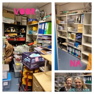 Op mijn school Visio in Grave mag ik een innovatie lab inrichten. Ik zei ik wil gaan lab, maar ik wil een kast (die op slot kan) zodat ik met mijn spullen in de klassen kan. Ik het al veel rondgekeken op school maar er is bijna geen ruimte. Er is een ruimte die helemaal vol staat. Daar mag dan de kast staan. Maar ja, die kast moet wel eerst opgeruimd worden. Dat heb ik met een collega gedaan. Ik had alle mensen op de hoogte gesteld die daar spullen hebben staan dat die kast opgeruimd gaat worden. En dat post-its moeten plakken wat waar naar toe moeten. Nu maar hopen dat de kast snel kan komen.