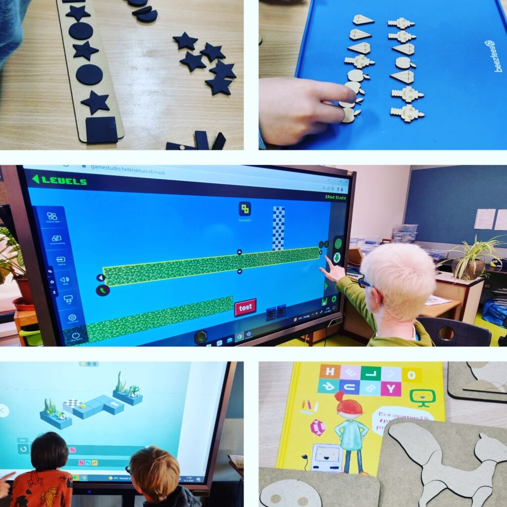 Deze week heb ik weer lekker veel lessen mogen geven bij mij op school rond Computational Thinking. Ik heb oa een stuk gelezen uit het boek van Hello Ruby. De leerlingen hebben gevoeld hoe de figuren uit het boek voelen en we hebben verschillende patronen gelegd met verschillende vormen in een mooi plankje zodat de patronen ook goed blijven zitten. Ook heb ik de website rodocode.com uitgeprobeerd. Ik wil een alternatief hebben als Ko de Kraker offline wordt gehaald. Deze website werkt met blokjes die je op de juiste manier moet neerzetten om een poppetje te laten lopen. De meeste van dit soort puzzel spelletjes werken met heel veel tekst, maar deze alleen met blokjes. Voor onze leerlingen was het op het digibord goed te doen en met 20 levels ook in haalbaar in een uur. In een andere klas heb ik games gemaakt met de gamestudio van het klokhuis. Er waren maar een paar leerlingen en daarom was dit goed te doen. We begonnen op het digiboard, maar een van de leerlingen ging snel zijn laptop halen. Ook de docent zag dat ze dit nog wel een keer kon herhalen.