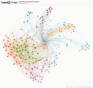 Via het blog van Margreeth kwam ik op deze website. Hiermee kun je een overzicht krijgen van de linken tussen je linked-in personen die je hebt. Wel grappig te zien hoe hij ze in groepjes indeelt. Het meeste klopt wel. Je kunt het kleurtjes en namen geven!  Hier is mijn overzicht.