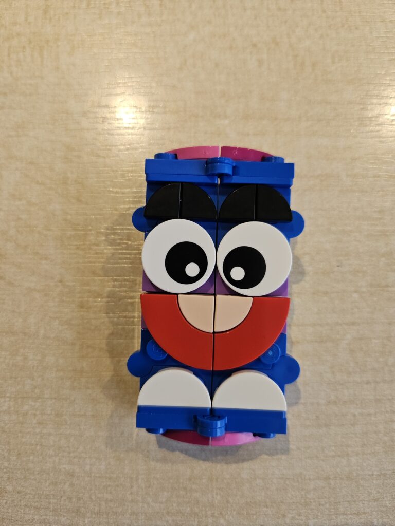 Ik gebruik alleen niet de gladde blokjes. Want die vervang ik door de halve cirkels, oogjes etc. Dus het laatste gedeelte is zelf even goed puzzelen, wat moet nu waar. Kijk hieronder naar het voorbeeld.
