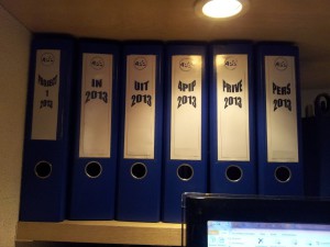 Al de nieuwe mappen voor 2013 zijn er klaar voor. Mooi leeg. En nieuwe labeltjes. Als zo’n nieuw jaar begint altijd spannend. Wat zal het brengen. Welke projecten zal ik het komende jaar gaan doen. Een aantal zitten in de pen. Maar er komen altijd toch weer nieuwe onverwachte leuke dingen op je af. kom maar op.