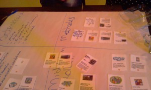 Vrijdag was ik bij de netwerkbijeenkomst van Media4Me. Zij willen mensen samen brengen die bezig zijn in de sociale pracht wijken met nieuwe media. Een enorme hoeveelheid mensen die allemaal bezig zijn met het maken van filmpjes met jongeren op scholen etc. Heel leuk. Ik miste wel even het linkje naar mediawijsheid enzo. Ik kwam daar wel iemand tegen die gamemaker cursussen geeft met mijn boekje, dat is wel heel grappig. We deden daar een game om mensen te laten nadenken over dingen die je in de wijk kan doen. Ik dacht dat het een echte game was, maar hij was op papier met kaartjes.