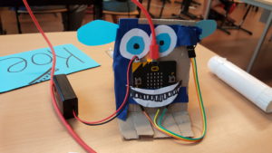 Vlak voor de vakantie had ik 4 weken met een brugklas. Ik vond het een leuke uitdaging om 4 weken 1,5 uur met de microbit te werken. De eerste les was een basis les met de microbit. Wat kan hij, wat kun je er mee en wat kan ik er mee. De tweede les kregen ze de opdracht om iets te maken. Dit mocht alleen of in groepjes. Je zag dat een aantal leerlingen heel breed dachten maar met behulp van de ontwerpcirkel konden ze dat meer stroomlijnen. De derde les gebeurde er niet zoveel. Maar in de laatste les zag je dat ze echt iets wilden maken. Ook moesten ze van mij iets presenteren en de winnaar kreeg een microbit mee naar huis. Er waren verschillende dingen gemaakt. Een temperatuur meter voor de vriezer, een lampje wat aangaat als het donker wordt, een inchworm, een strikje wat rond draait. Iemand was heel lang bezig om zijn auto met een motortje te laten verbinden en twee jongens wilden hem alleen maar programmeren via hun telefoon. De winnaar was het lampje wat aanging als het donker werd. Ze hadden het heel goed aangepakt en gebruik gemaakt van een sensor en ook een led lampje. Ze dachten groot maar probeerde eerst klein en maakten het steeds groter.