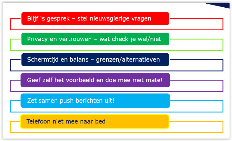 Wat bleek, zoveel is er niet veranderd, wel hoeveel ze online zijn maar niet qua adviezen naar de ouders toe. En wat me ook opviel dat er initiatieven zijn om je kind geen smartphone te geven tot ze 13 jaar zijn. Ook kwam ik deze mooie richtlijnen tegen van het ministerie van Volksgezondheid, Welzijn en Sport.