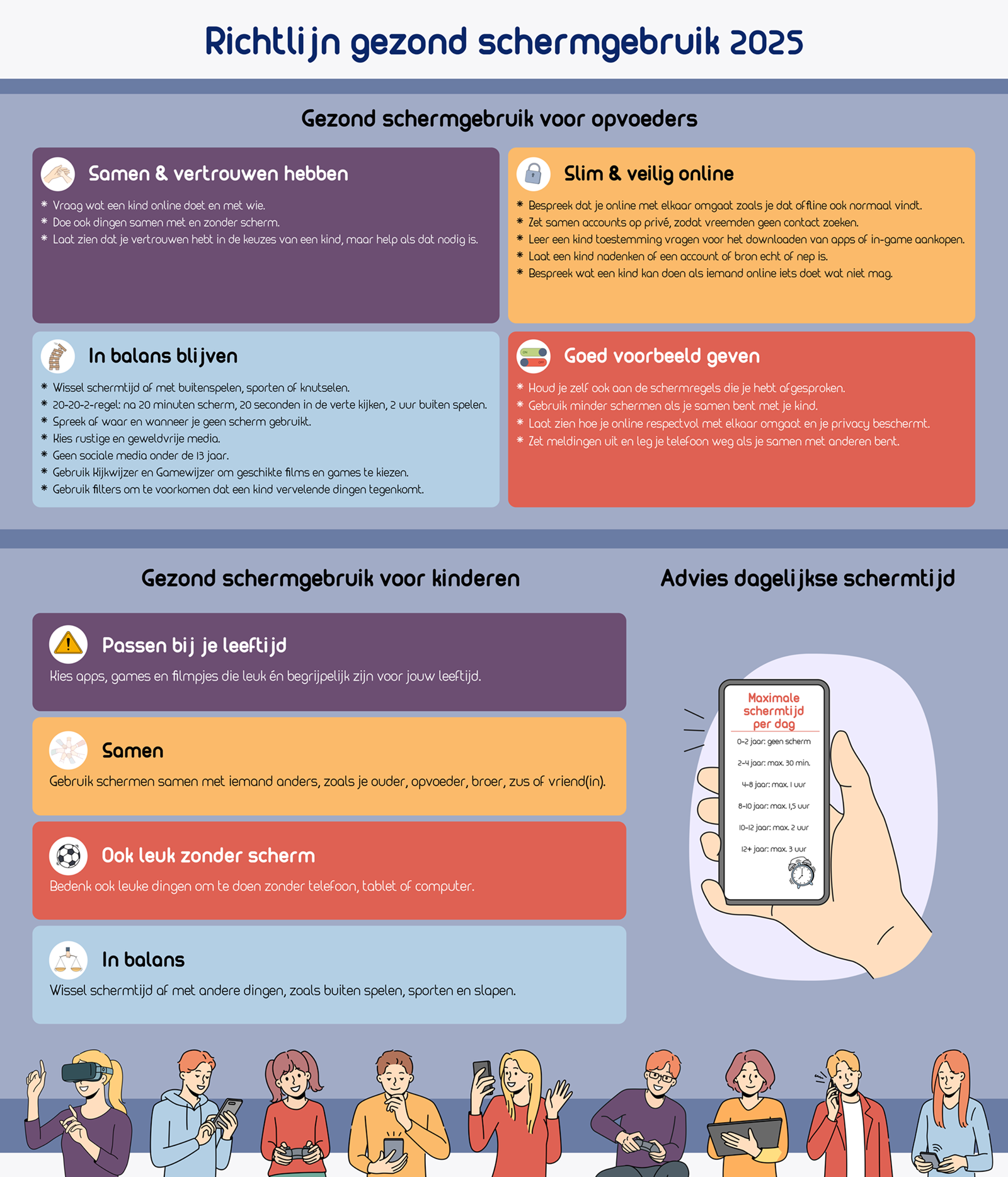 Wat bleek, zoveel is er niet veranderd, wel hoeveel ze online zijn maar niet qua adviezen naar de ouders toe. En wat me ook opviel dat er initiatieven zijn om je kind geen smartphone te geven tot ze 13 jaar zijn. Ook kwam ik deze mooie richtlijnen tegen van het ministerie van Volksgezondheid, Welzijn en Sport.