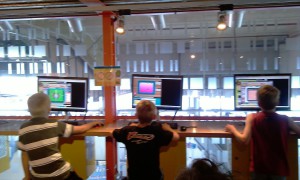Ik was het afgelopen weekend in het Museum Nemo om twee dagen lang workshops games maken te geven met het Scientic Festival. Ik had in Nemo een mooie ruimte tot mijn beschikking met wel 15 computers. Deze allemaal opgestart op de gamestudio van het klokhuis. Op zaterdag was het niet zo druk maar gelukkig op zondag een stuk drukker. Dus kon ik aan de lopende band dingen uitleggen. Sommige kinderen kwamen zelfs terug. Het leuke van de gamestudio is dat ze het naar zichzelf konden mailen zodat ze zelf thuis verder konden gaan.