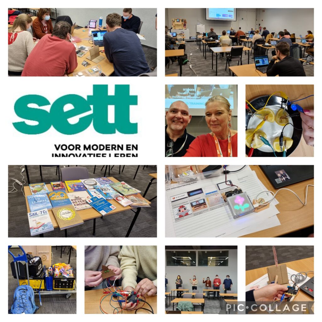 Dit jaar was gelukkig het SETT congres weer live in Gent. Door de corona was het de afgelopen jaren online, maar live is echt wel een stuk leuker. Ik was de avond vooraf al naar Gent gegaan en zodoende was ik op tijd op de locatie. Ik had al mijn micro:bit spullen bij me. De deelnemers kwamen op tijd binnen en na mijn presentatie gingen ze aan de slag. Je merkte dat ze een aantal al eerder met de micro:bit hadden gewerkt. Het was ontzettend leuk om zon sessie weer live te doen. In de middag mocht ik nog een verhaal houden over STEAM in het onderwijs. Daarvoor had ik vooral voorbeelden wat je beter niet kon doen. Ik had ook een aantal hele praktische voorbeelden bij die de deelnemers zelf konden doen.