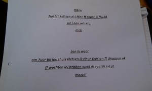 Vorige week was het gedichtendag. Ik dacht daar kan ik wel wat leuks mee doen. Dus ik heb een les sms-gedichten maken gedaan. De leerlingen eerst verteld over dichten. Wanneer doe je dat etc. Toen als je dit nu in sms-taal doet. Wat dan. Dus wat voorbeelden laten zien. Toen wilde ik ze zelf aan de slag laten gaan. Maar dat was toch nog wel erg moeilijk. Ik heb ze toen op de website 1001 gedichten laten kijken. Of ze hier een leuk gedicht zagen en ze dit laten omzetten in sms-taal. Dit gedicht hebben ze mooi kunnen maken op een glogster. De leerlingen vonden het nog erg moeilijk. Deze groep leerlingen vonden het erg moeilijk. Maar een leerling bracht het tot een goed einde! Ik zou het nu wel eens willen uitproberen met een andere doelgroep!