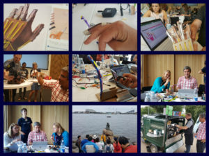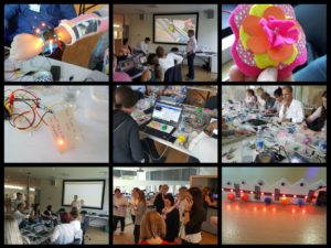 Op donderdag waren er geen workshops meer maar hadden we lezingen en opdrachten die we in groepen moesten maken. De workshops werden gegeven door een team van Stem Microsoft. Op deze site staan en stuk of 6 kant en klare lessen. Ze benadrukken dat je met weinig geld al heel veel dingen kan maken. Karon Weber benadruk dat je grote vragen moet stellen aan kinderen (Are there Aliens? Are we real?) . Ze deed met ons een oefening terwijl ze een lepel liet zien. This is not a spoon, but ….. (an transformer to go to the sun, it gives me things, it helpes me to put on my shoes). Om met kinderen aan de slag te gaan met design thinking moet je goede voorbeelden geven en uit gaan van Design, Make and Play. En vergeet niet altijd deze vragen te stellen: Why, How, Who, What, When and Where.  In de middag was er een lezing van Lisa Anna Floyd. Zij vertelde over kinderen en programmeren. Ze gaf een mooi voorbeeld dat kinderen eerst moeten raden wat de code doet, voordat ze het gaan programmeren. Deze tip kwam ook in Birgmingham bij de CAS meeting.