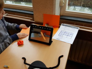 Gisteren mocht ik weer een ictles geven op mijn school voor speciaal onderwijs. Ik had lekker veel materiaal meegenomen en de iPad’s geregeld zodat ze stop animation’s konden maken. Ik gebruik daarvoor altijd de Lego Movie app. De leerlingen moeten eerst een storyboard maken. Dit valt niet altijd mee. Maar ze doen het wel. Ze krijgen anders de iPad niet. Ze gingen aan de slag. Twee leerlingen die wilden het alleen maken. Een leerling was heel onzeker, maar met wat hulp van mij heeft hij een prachtige stop animation gemaakt met een echt verhaal erin. Hij kon er zelf niet over uit, dat hij zo goed gelukt was. Eén van de jongens die altijd heel druk is, was heel lang bezig met zijn storyboard. En toen hij aan de slag ging, had hij een kleine “studio” gemaakt en zat heel rustig zijn filmpje te maken. Bijzonder om dit soort dingen te zien.