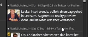 Afgelopen zaterdag hadden we een studiedag van Ouders en Co. Eens per jaar komen de docenten van Ouders en Co bij elkaar om elkaar tips te geven om te presenteren. Dit maal gaf iemand een lezing over hoe je je zelf voor een lezing rustig kon maken door middel van ademhaling oefeningen. Bij mij werkte het niet helemaal. Ook liet een andere docent prezi zien. Ik heb beloofd dat ik de nieuwe game presentatie ook in prezi ga zetten. Na de lunch mocht ik en heb wat van de games laten zien en ook van augmented reality. Leuk om te doen en de verbaasde gezichten te zien. Leuk als je later op twitter ziet wat ze er van vonden.