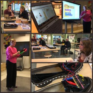 Deze week was ik in Valkenswaard bij een van de SKOzoK scholen. Zij hebben sinds vorige jaar zogenaamde COOL boxen (coderen, ontwerpen, onderzoekend, leren). Deze boxen kunnen door de scholen geleend worden en bevatten verschillende lessen, materiaal en activiteiten. Ik had al eerder een workshop gegeven maar nu wilde ze wat dieper op de stof in gaan en ook kijken hoe ze meer betekenis vol aan de slag konden gaan. Dus ik had een korte presentatie en daarna zijn we praktische met scratch gaan werken en hebben we een verhaal geschreven met scratch (voorbeeld op scratchles.nl). Hierna was de microbit aan de beurt. Ik had een aantal projecten voorbereid, maar op hun nieuwe chrome books, was de functie van usb poort geblokkeerd, dus konden ze wel dingen maken op het scherm, maar echt iets op de microbit zetten lukte jammer genoeg niet. Gelukkig lag er nog veel meer materiaal en zijn we daarmee aan de slag gegaan.