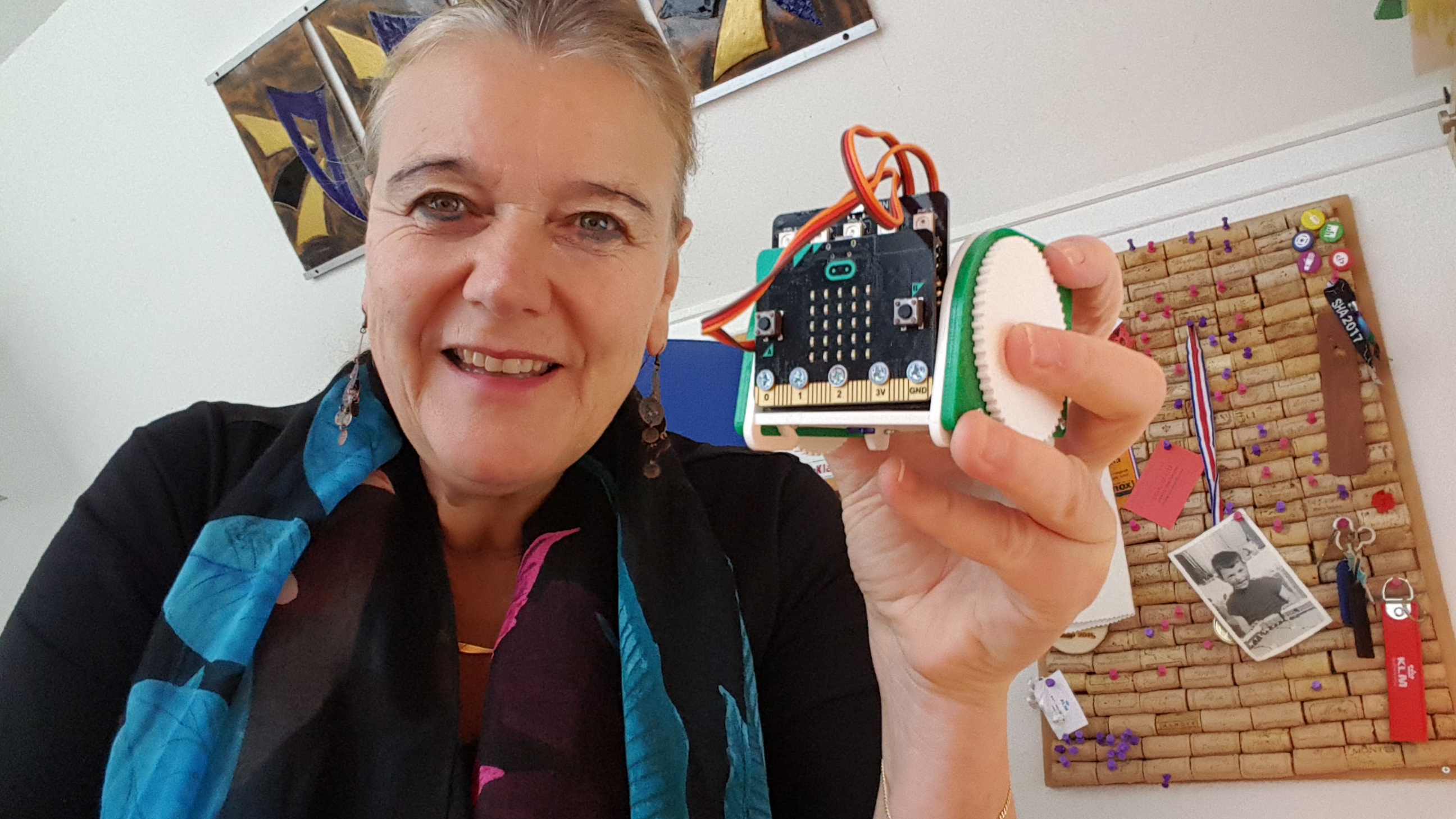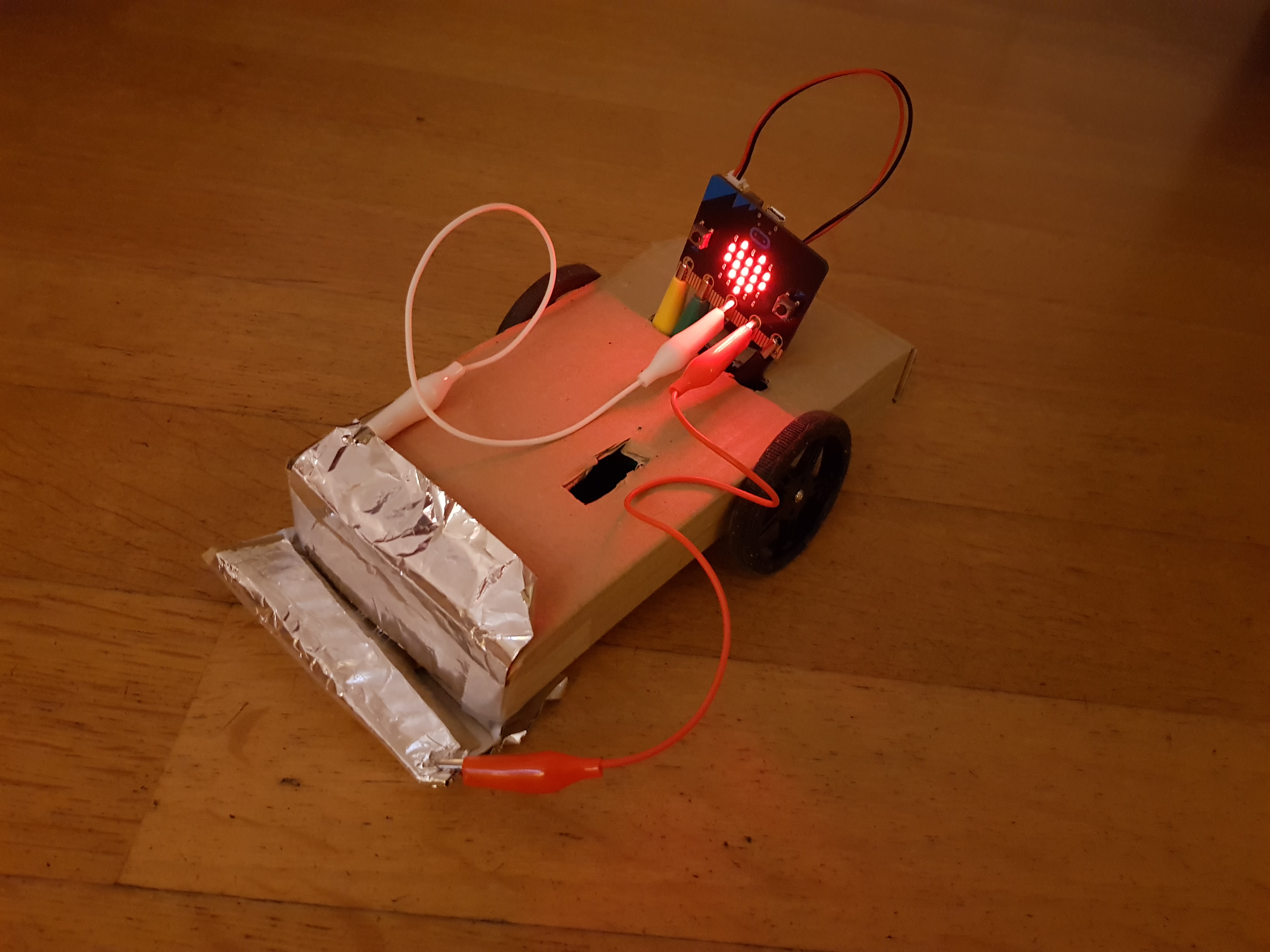 Tijdens de BETT van 2017 had ik een raceauto gemaakt met een microbit erin en deze raceauto werd afgeschoten. Toen