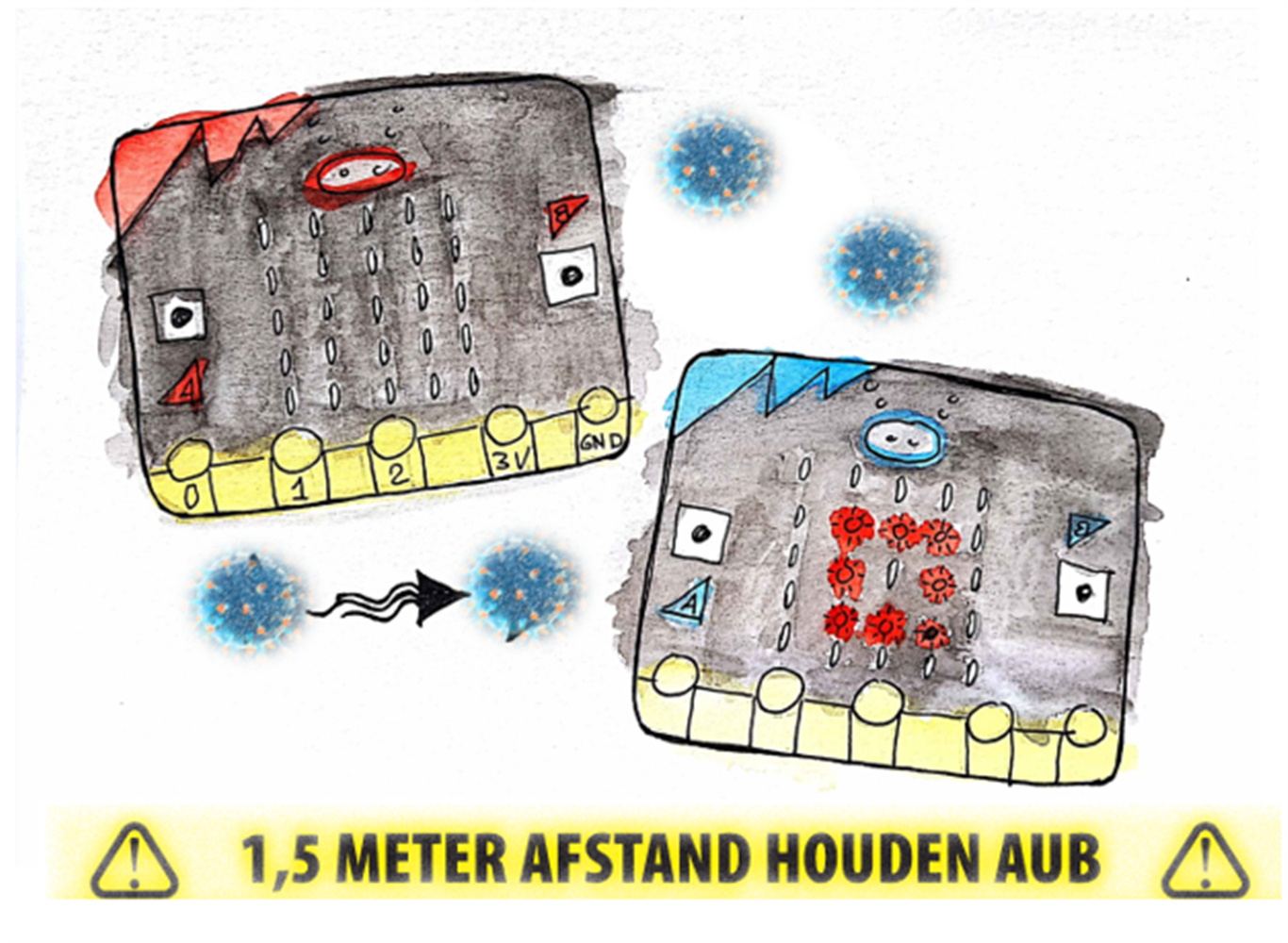 Ik heb een corona meter gemaakt voor de micro:bit. Twee (of meer) micro:bits kun je met elkaar verbinden en en