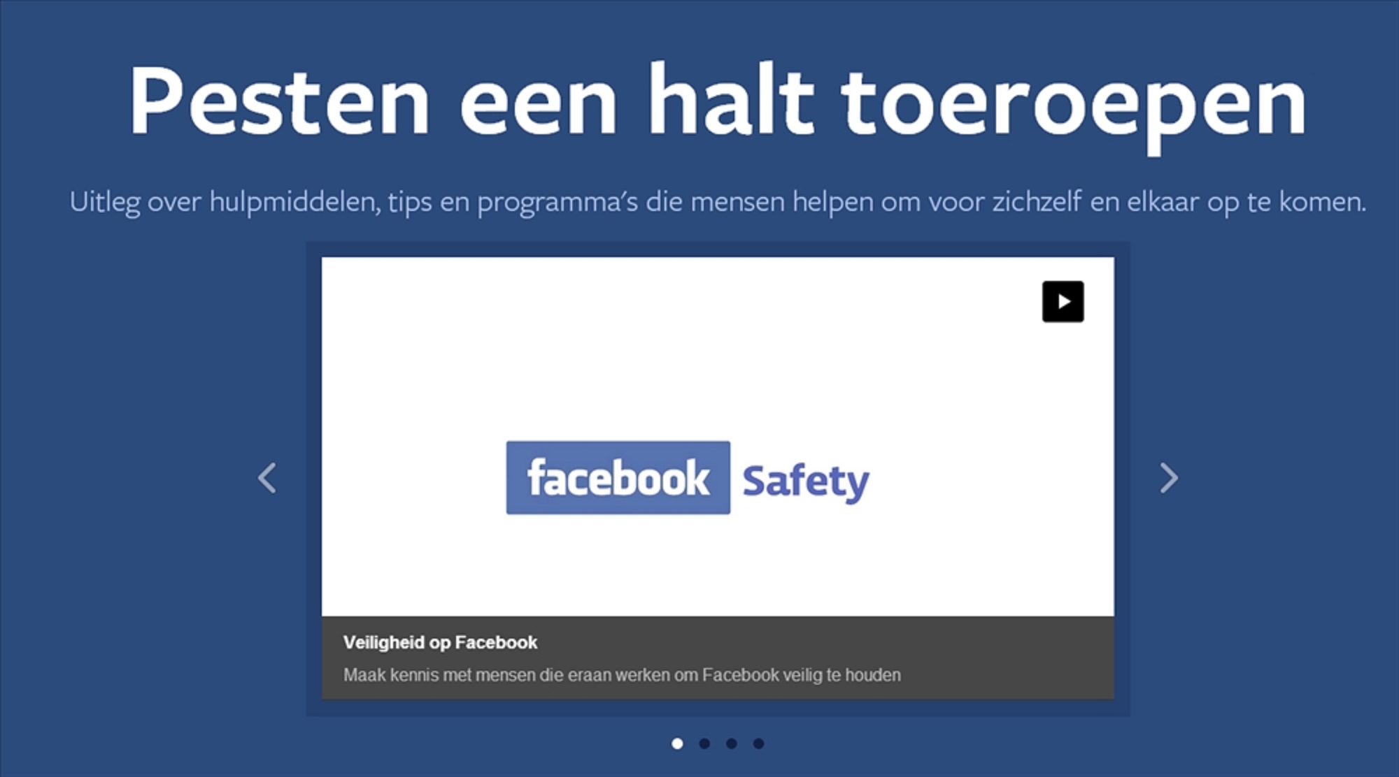 Facebook heeft nu ook een Nederlandstalige site tegen online pesten met uitleg over hulpmiddelen, tips en programma’s die mensen helpen