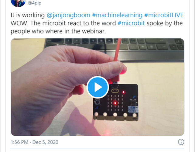 Tijdens het micro:bit Live event van afgelopen december zat ik in de sessie van Jan Jongeboom over machine learning. Hij