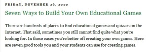 Ik kwam dit bericht al eerder tegen. Een bericht over verschillende manieren om games te maken. Ik mis in dit lijstje wel Alice, Gamestudio van het klokhuis, Scratch en GamesFactory.