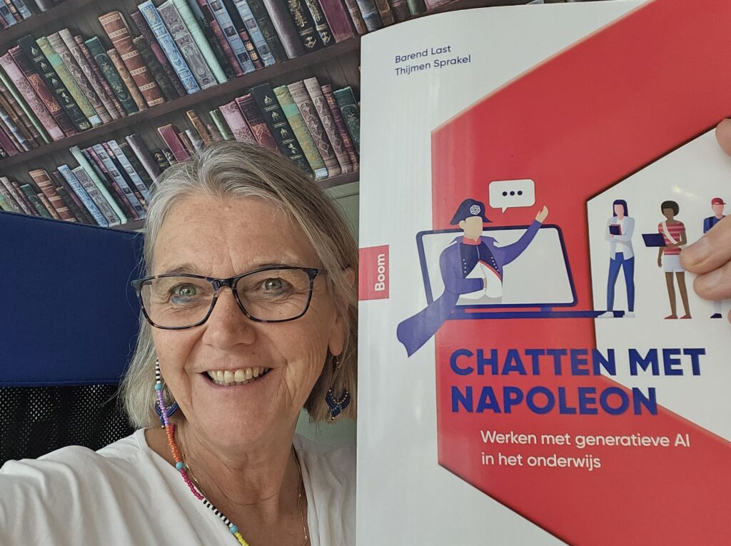 Ik kreeg bij het I&I congres het boek Chatten met Napoleon van Berend Last en Thijmen Sprankel. Het boek is gaat over AI en het is geschreven voor het onderwijs.