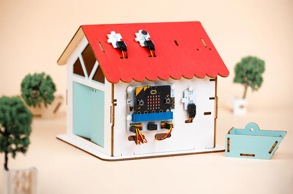 Op de BETT in Londen heb ik de Classsroom Smart Home Kit meegenomen. Het zit in een klein doosje en er komt een setje bij van een houten puzzel om een huisje in elkaar te zetten. Het ziet er schatting uit. Afgelopen maand ben ik er pas aan toe gekomen om hem in elkaar te zetten.
