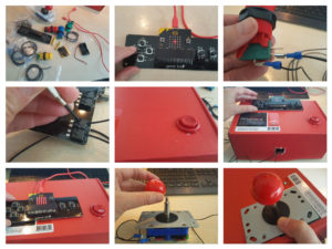 Vorige maand heb ik bij sparkfun de micro:arcade kit gekocht. Ik kreeg hem snel opgestuurd maar ik moest nog wel 27 euro betalen aan de douane. Voor een leuke gadgets van 35 dollar is dat best veel. De handleiding om hem in elkaar te zetten staat online en het is goed te volgen. Leuk dat je van de doos waarin hij komt je arcade kan maken. Je start met de micro:bit in hun extension te zetten en je kunt een eenvoudig game maken. Hierna maak je een gat in de doos en kun je een arcade knop gebruiken. En als laatste verbind je de joystick aan je extension en kun je de pixels op je micro:bit bedienen.